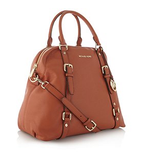 Luxe gold-tone hardware and buckled straps lend a stylish finishing touch to the Bedford bowling satchel in Burnt Orange from MICHAEL Michael Kors. Extra large in size, this multi-pocketed design will house all your daily belongings.