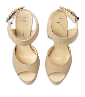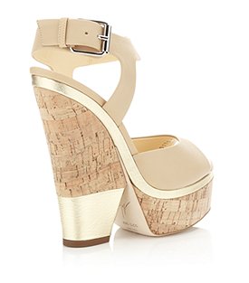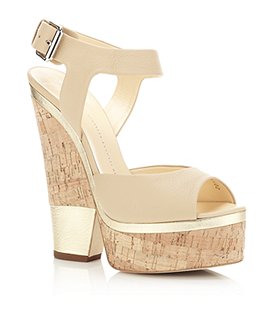Giuseppe Zanotti’s statement sandal in beige features a high cork wedge with metallic detailing, and a buckle at the inner ankle. An eye-catching sculptural style that will prove the finishing touch to your SS12 evening ensembles.