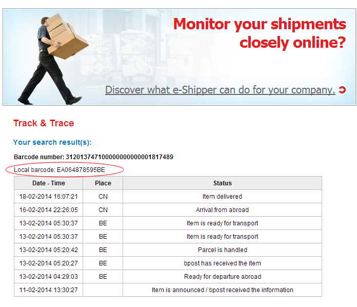 • 比利时邮政快递查询网址:http://www.bpostinternational.com/en/e-shipper/track_and_trace.html