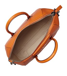 In smooth orange leather, this structured tote bag from Givenchy is the epitome of chic. Boasting clean styling and punctuated with the brands iconic logo, this standout accessory will add a polished edge to any number of ensembles.